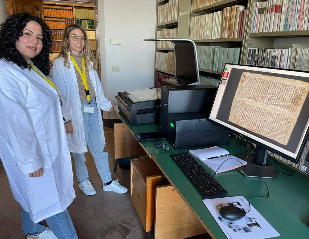 Through this selection process, two members of the MeMo team – Ylenia Nardone and Giuseppina Civitillo – were chosen as ideal candidates to lead the digitization activities: a significant recognition of the high-level skills developed within MeMo, which in recent years has cultivated advanced expertise in manuscript digitization and the management of complex archival materials.